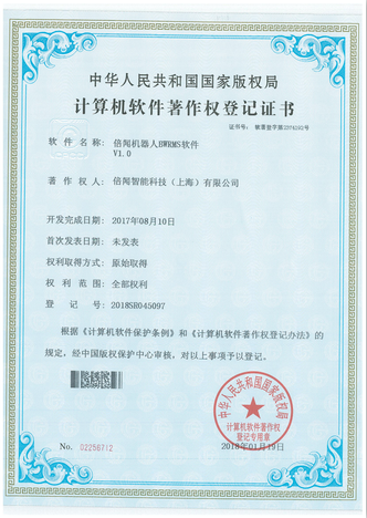 Our company's independently developed Beiwen robot control software and Beiwen robot BWRMS software have obtained registration certificates.